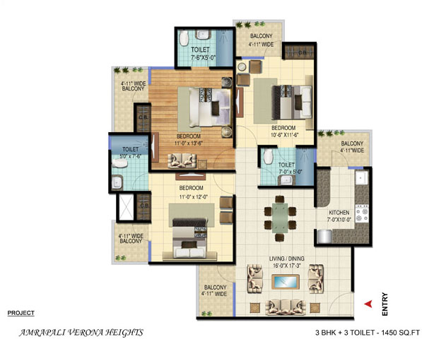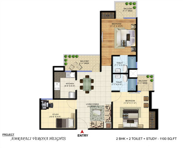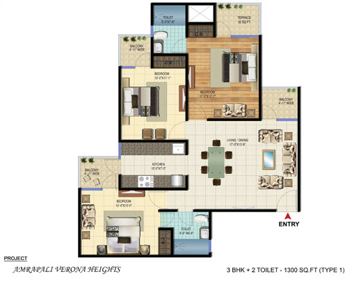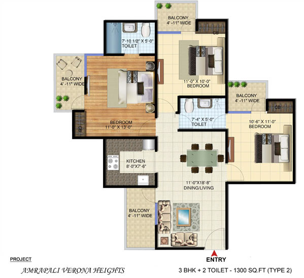 Entrance Doors : Flush doors with ply wand melamine polish. |