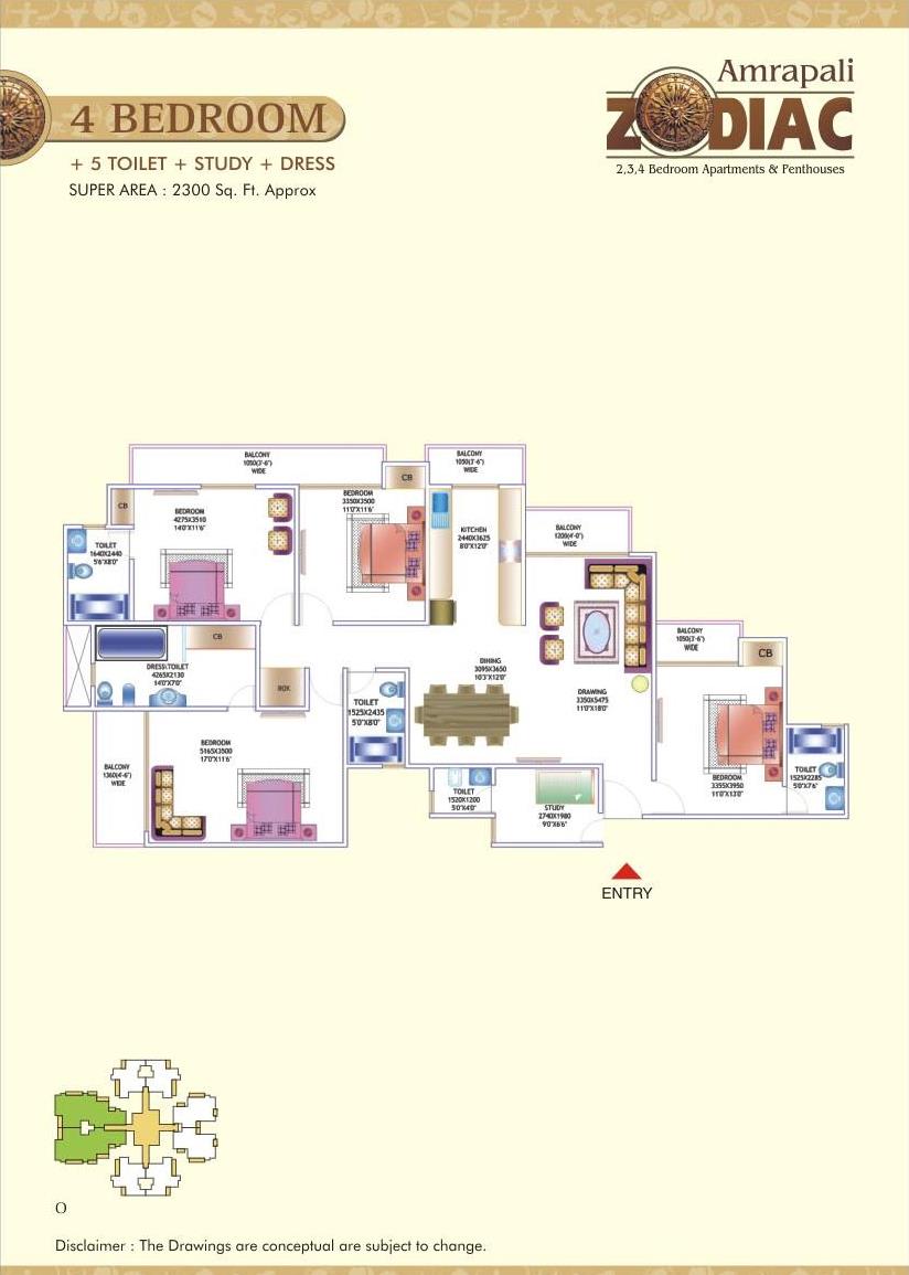 5 Toilet + Study + Dress Super Area :2300 Sq. Ft. Approx