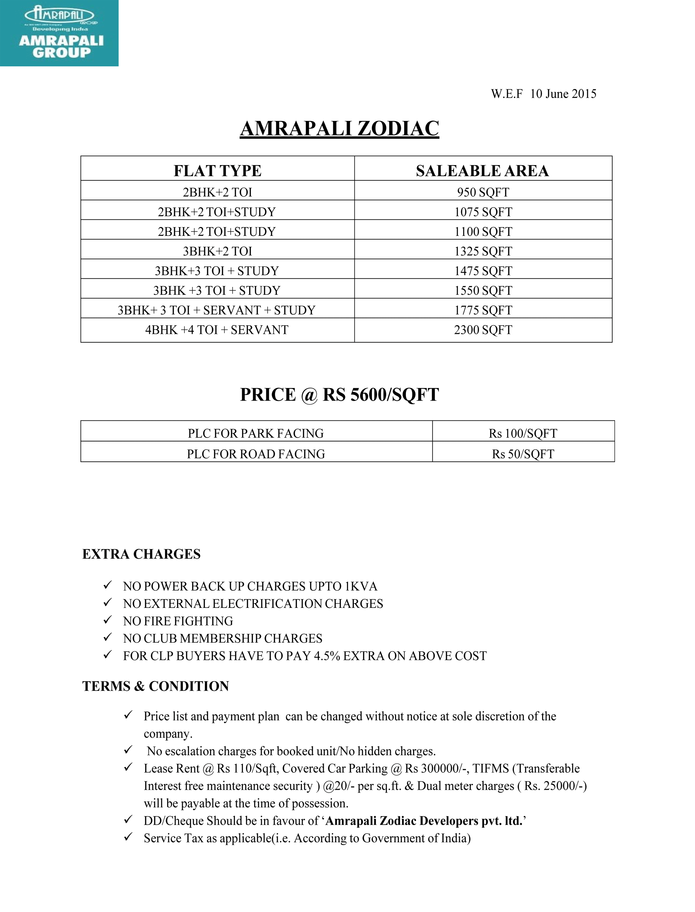 Amrapali Zodiac Noida provides the best and the finest way of lifestyle in all aspects. 80% open area provides 100 % free circulation of mild & air to each residence. Vastu certified, generously built entry entrance hall in each structure, state-of-the-art team functions are a few ideas to the venture. Housing offered includes Penthouses and Apartments which range from 950 to 2450 sq. ft.