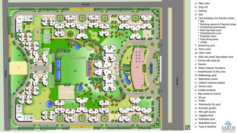 Party Area with Pavilion and Amphitheater Health Zone with Art of Living Classes, Yoga Classes, Aerobics Classes |