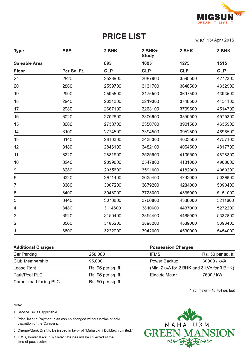 | Mahaluxmi Green Mansion presents luxurious and comfortable living options in Greater Noida in today's contemporary world in the midst the green nature equipped with well designed features which not only make living easy but enjoyable. Located opposite to Zeta-1,Greater Noida The Green Mansion is located opposite to Zeta-1, Greater Noida which is ideal as the site is away from the hustle and bustle of the hectic city life but in no way disconnecting you from the contemporary world and amenities. Enjoy living in a peaceful atmosphere where you can easily de-stress yourself. Approachable from all major destination Enjoy approachability and connectivity from all major destinations with facilities of commuting with metro station, airport and road networks and stay connected all times with all major points in the National Capital Region. Lush green environment Lush green environment is at its best and it captivates you through its lush green and eco-friendly environment. Healthy Living Healthy Living can be best enjoyed with facilities of jogging tracks for health conscious people. Yoga and meditation Centre for peace seekers and relaxation and the variety of facilities for indoor and outdoor games. Social Life Social Life can be best enjoyed in Green Mansion. The community is developed understanding human social nature. To live and function in society we have Community areas for residents, a comfortable T.V lounge and even fine dining multi cuisine restaurants within the complex boundaries. |