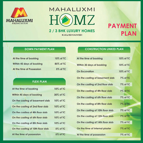 | Mahaluxmi Homz is a perfect combination of high-class, convenience, Design with stunning qualifications. Here features of recent day lifestyle are covered up in the peacefulness of characteristics. It is developed to bring you nearer to characteristics in the present traumatic lifestyle. Our flats are developed with highest care. Design, convenience along with quality is taken into account and are for the selected ones who aim at best in lifestyle. Located near professional businesses close to Radisson hotel Kaushambi, just a few metres away from the Kaushambi Metro Station, it is located on the boundaries of Ghaziabad and in the place of Delhi few minutes drive from the Pacific Shopping mall, the Anand Vihar station and the project is surrounded by well linked roads such as NH-24 and NH-58. |
