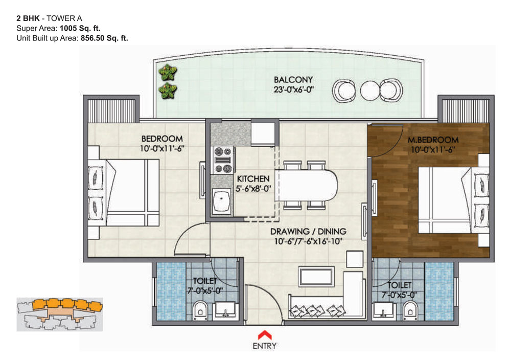 Unit Build up Area : 856.50 sq. ft.