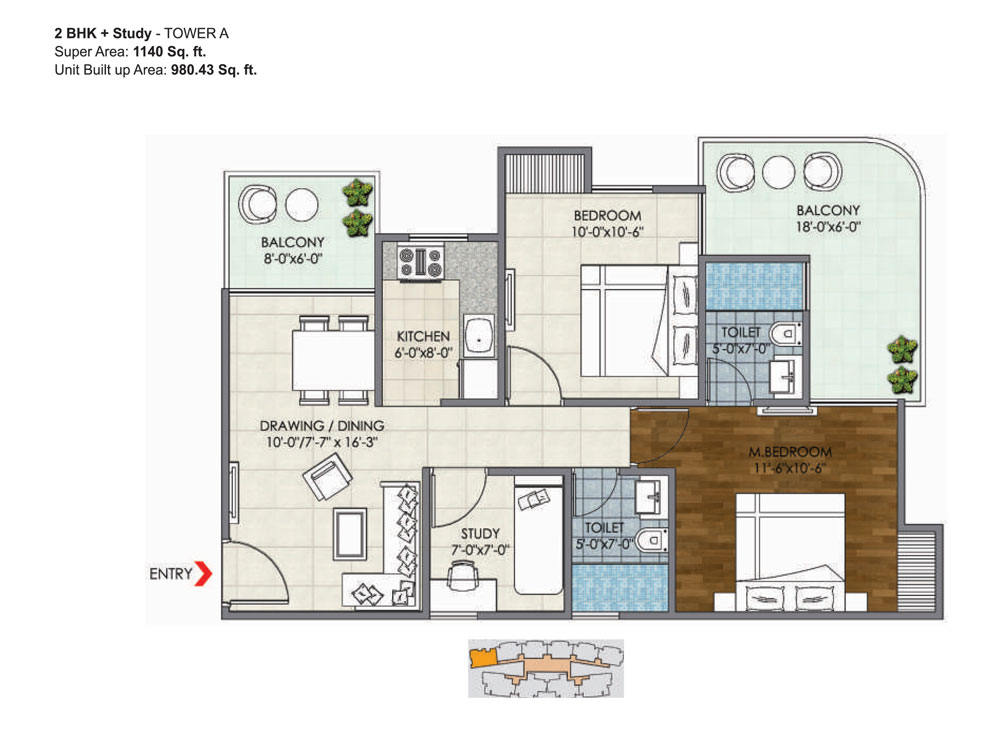 Unit Build up Area : 980.43 sq. ft.