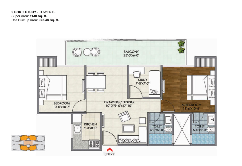 2 BHK + Study - Tower B