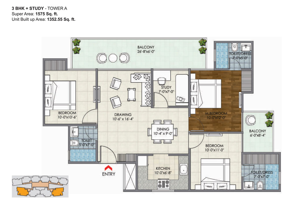 3 BHK + Study - Tower A