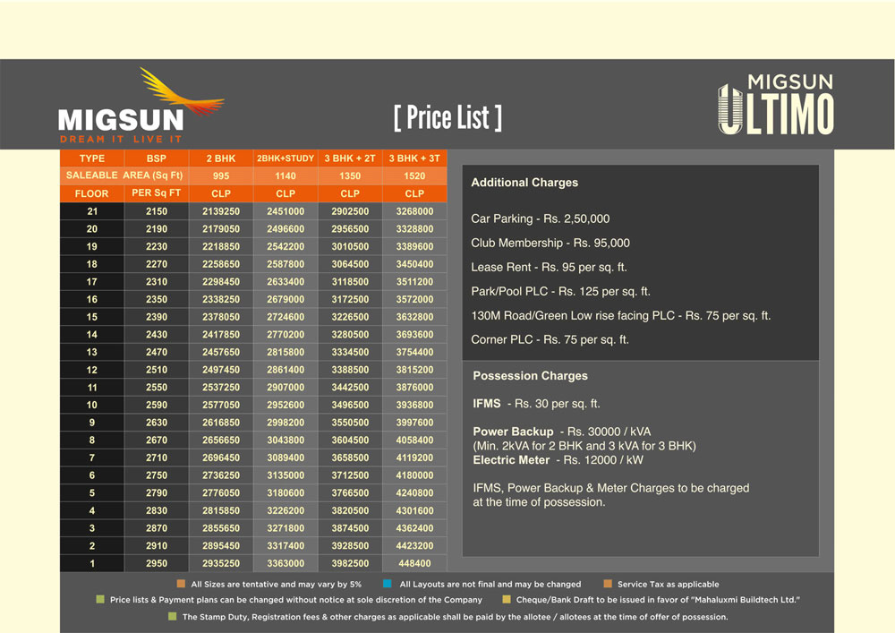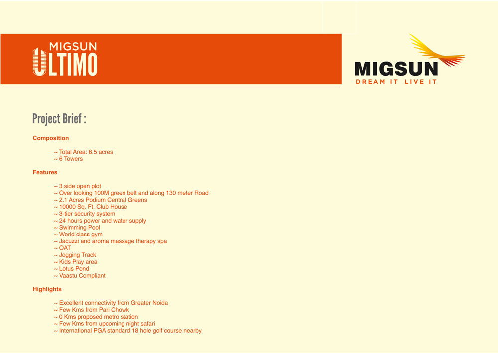 Migsun Ultimo Omricon 3 Greater Noida 2 BHK and 3 BHK flats are priced at affordable rates starting from Rs.2150 sq.ft. The prices are worth according to the luxury residences and its prime locations and definitely its lavish features and amenities one enjoys residing here.