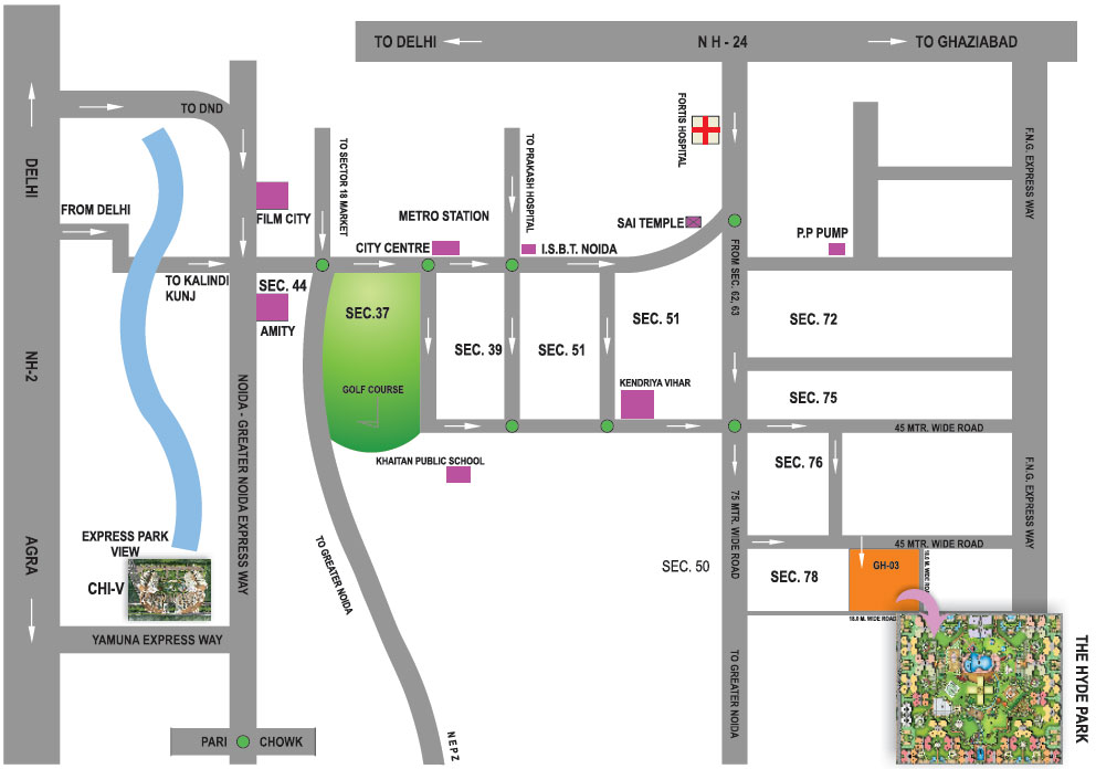 Nimbus Group The Hyde Park Noida is positioned with Sector 78 which enjoys good location and connectivity. Your project is near to crucial organizations for example Shopprix, GIP Mall, Delhi Public School (DPS) and also Sai Dham temple.