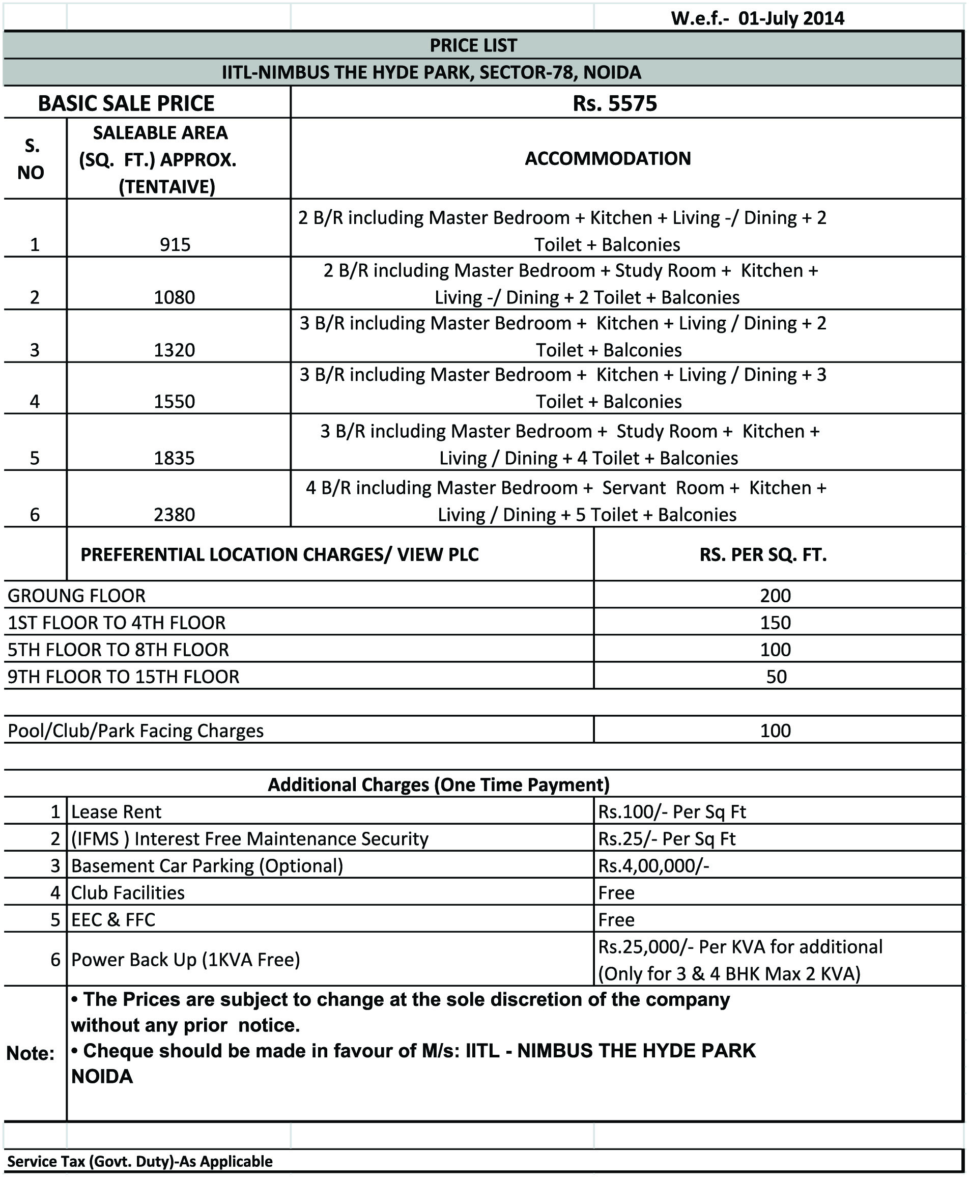 At IITL Nimbus The Hyde Park Noida allows home buyers will be able to make choice from 1BHK, 2BHK, 3BHK and 4BHK apartment from 525 sq.ft. to 2380 sq.ft. Residential apartments of the project have state-of-the-art features. Modular cooking area provides marble table, stainless kitchen sink and also high-quality CP accessories. Floorings in the apartments are vitrified tiles in living dining room, laminated wood floors in bedrooms and anti skid tiles in balconies and washrooms. Ventilation is assured with wide balconies and also huge glass windows. These kinds of Vaastu compliant properties have got park facing design that makes it simple that you should thrive on green views.