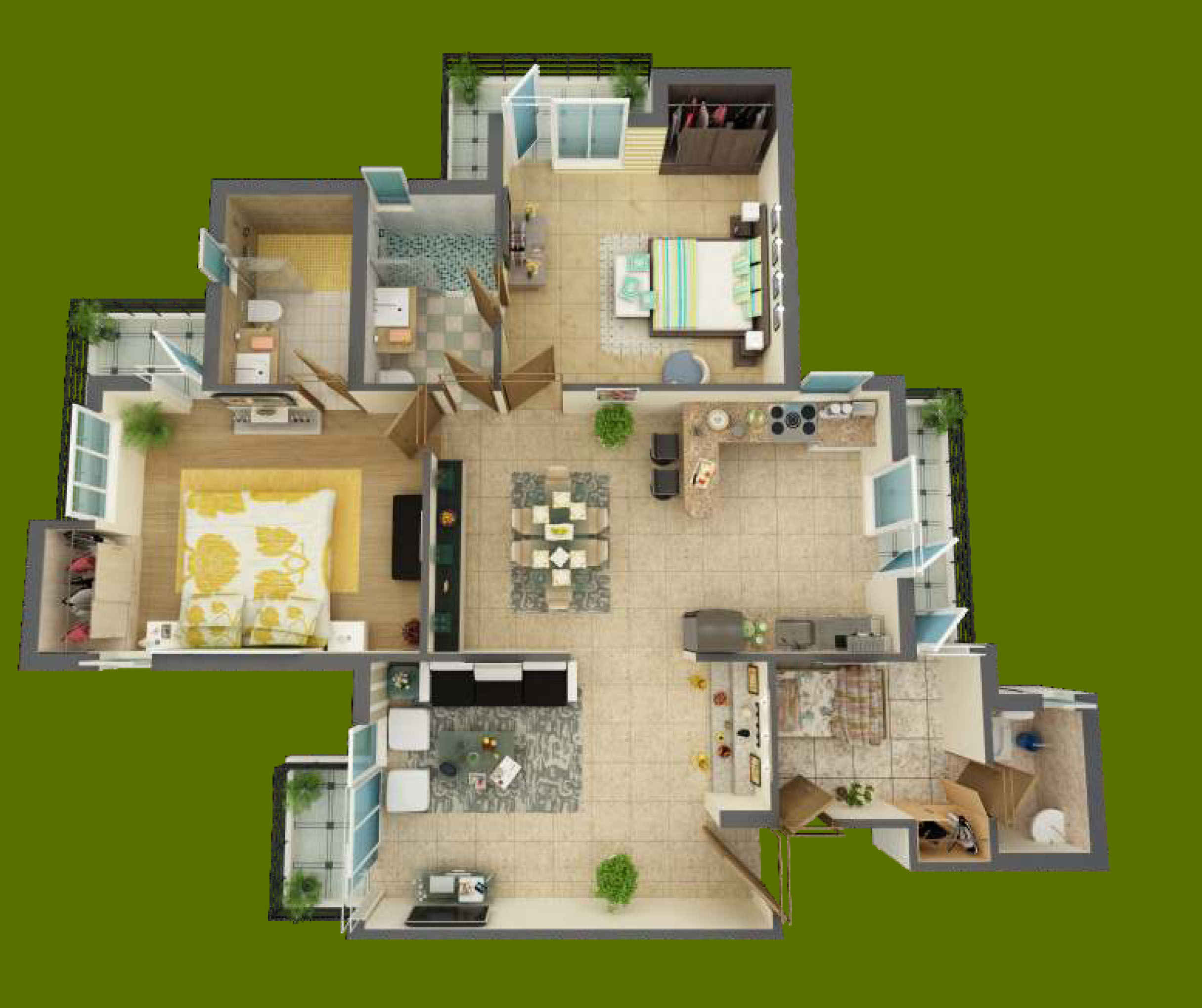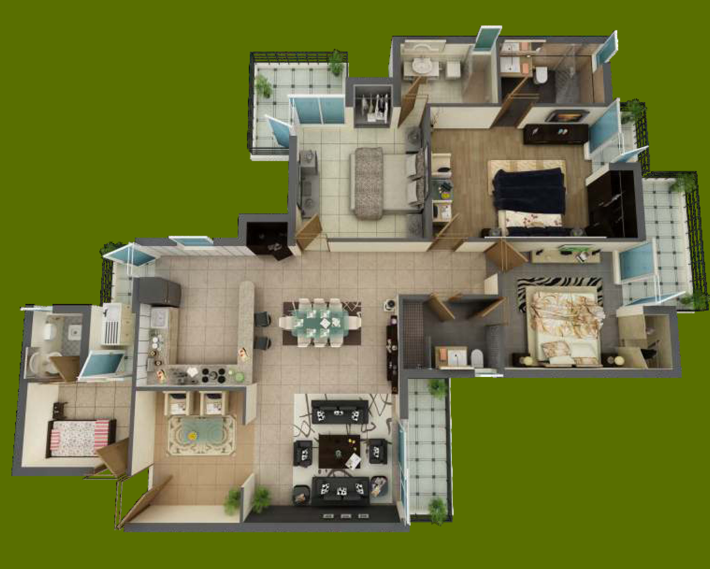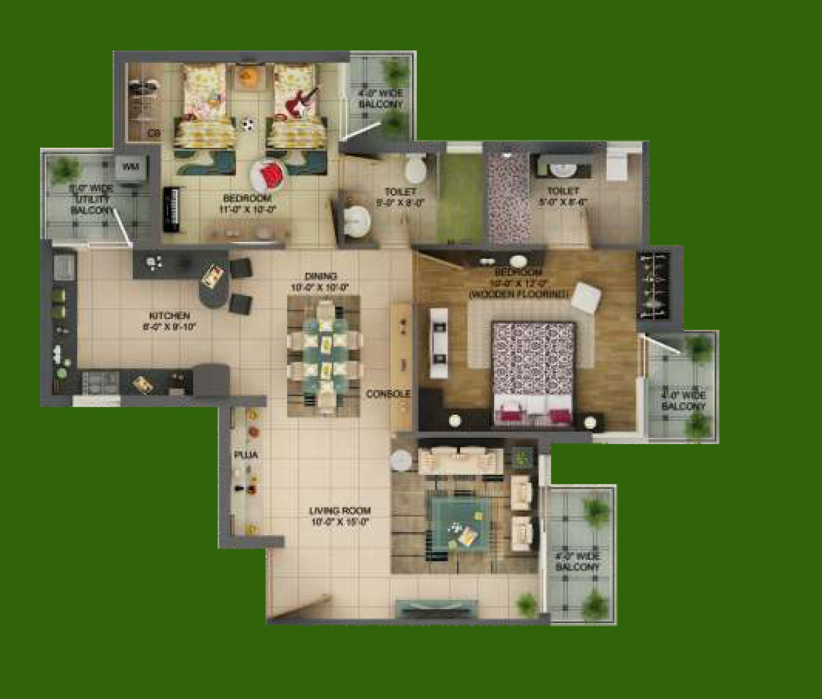 Vitrified Tiles in Drawing/Dining/bedrooms.Laminated wooden flooring in Master Bedroom. |