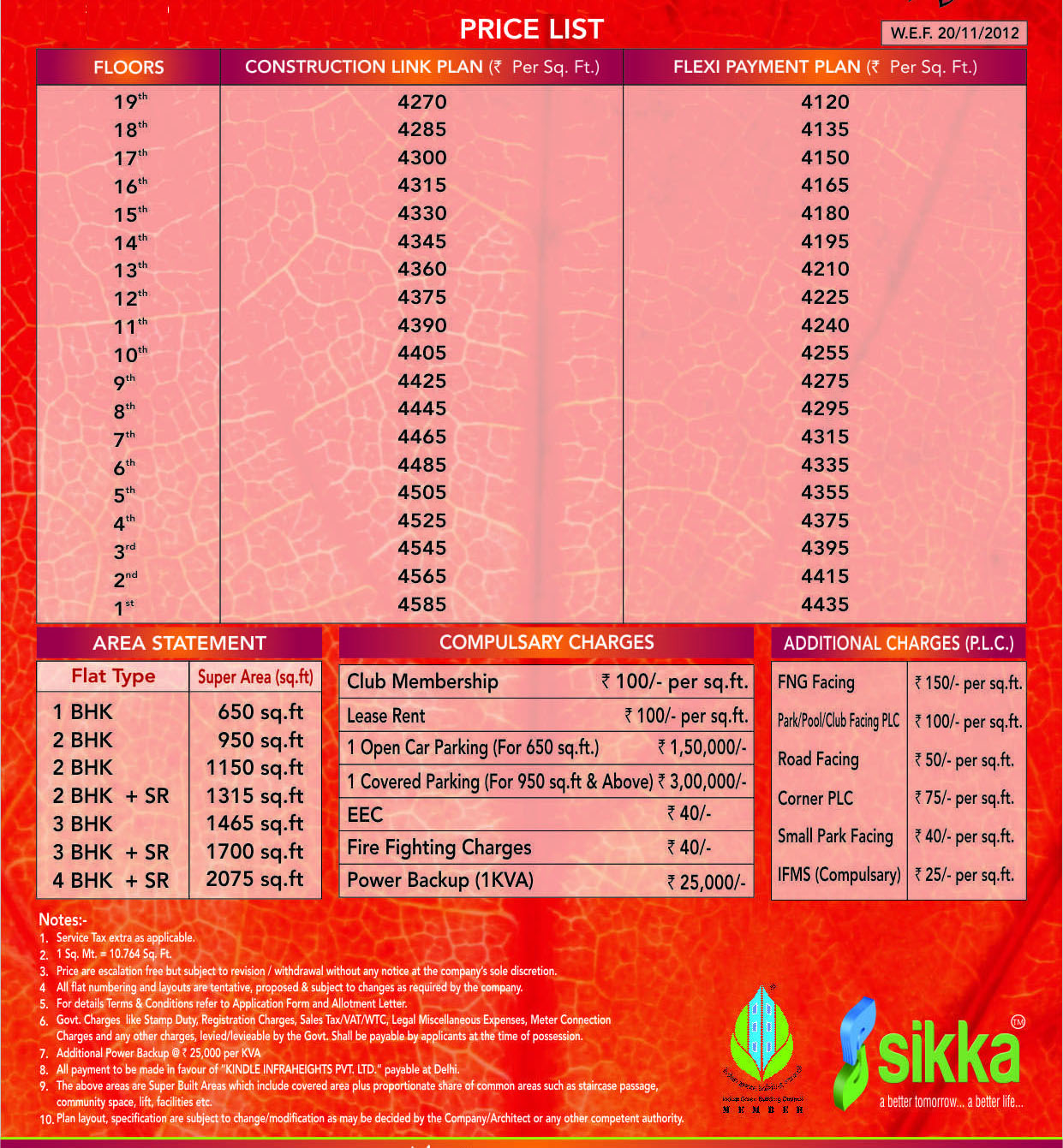 Anti-Skid ceramic tiles in kitchen ,toilet & balcony.Marbel stone flooring in corridor,lift,lobby and staircase. |