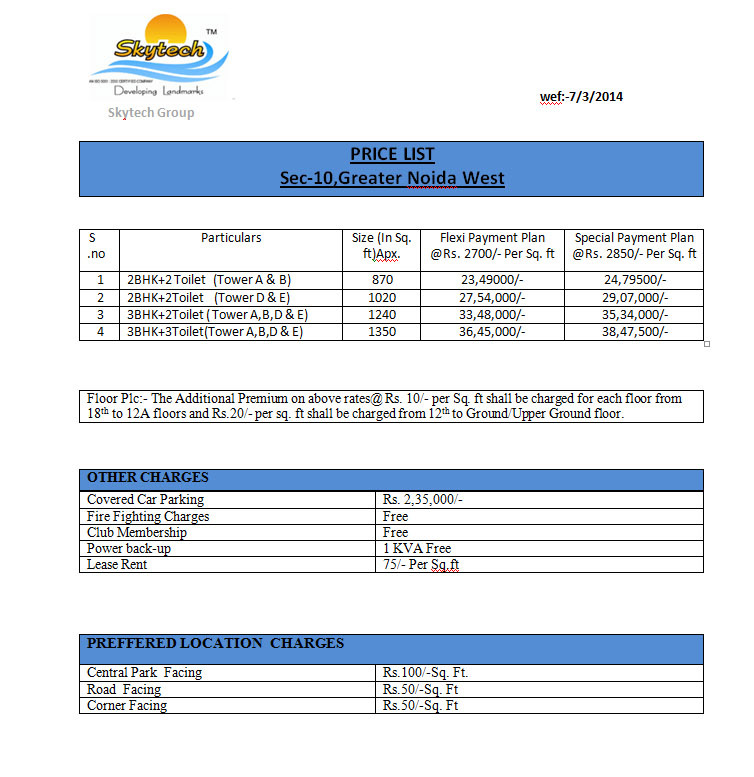 Enjoy a home in a gated community in prime NCR locality. Security is 24 hours with water supply and power back up as addded benefits. For relaxation there are options of a Club house, swimmimg pool, games courts. Your home here is a colourful abode of happiness. Life in Skytech Colours Avenue Sector -10 Greater Noida West is a dream come true.